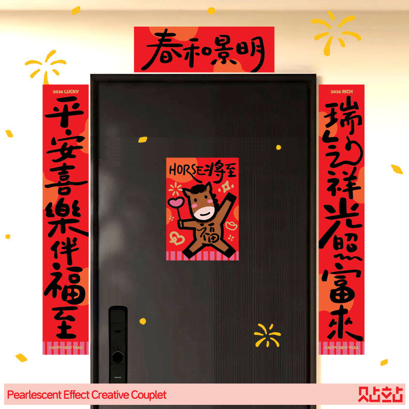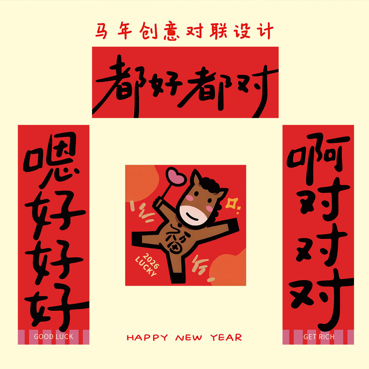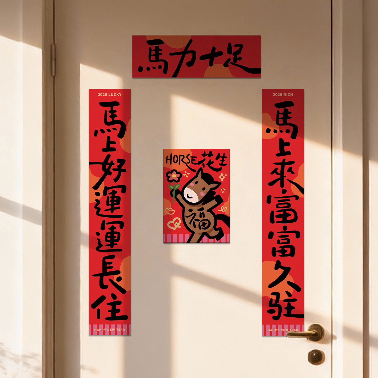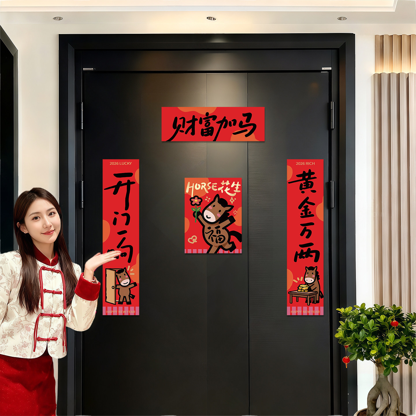 2026马年创意磁吸对联春节氛围装饰品春联卡通福字贴入户大门布置