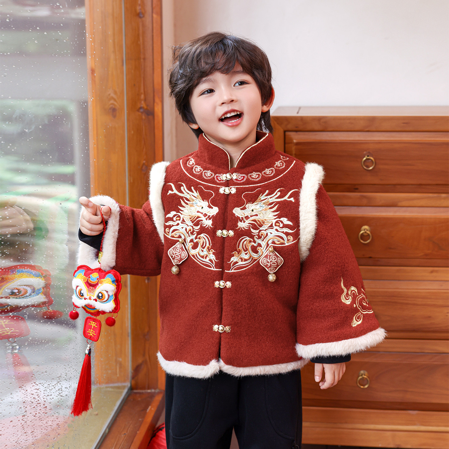 拜年服男童过年衣服红色喜庆风儿童拜冬年服冬装加厚新年唐装套装
