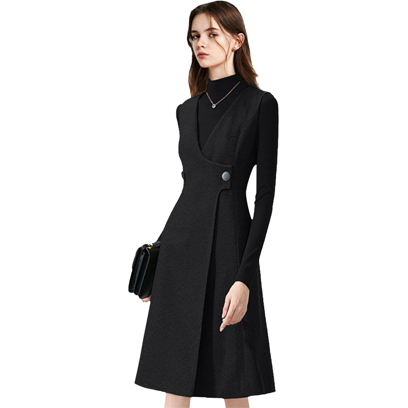法式吊带连衣裙2025春秋新款小黑裙轻奢修身背心马甲打底裙中长款