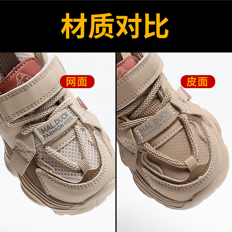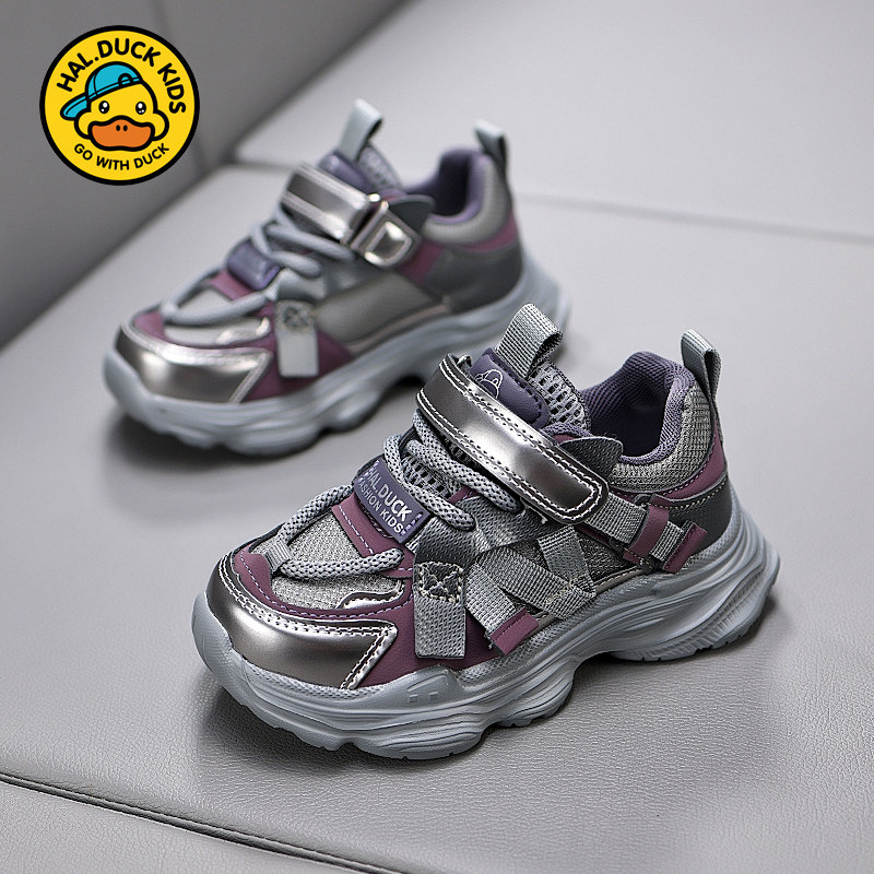 小黄鸭女童鞋子春秋款2026新款皮面防水儿童运动鞋女孩软底老爹鞋