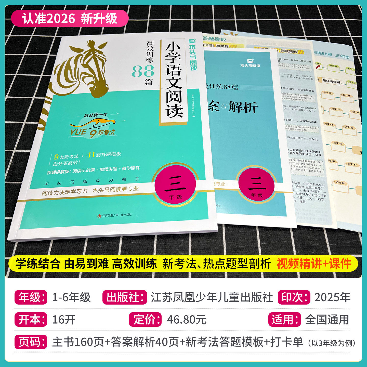 2026木头马阅读力小学语文高效训练88篇一二三四五六年级上下册小卷英语强化训练100篇木马头专项训练书4年级6年级测评答题示范