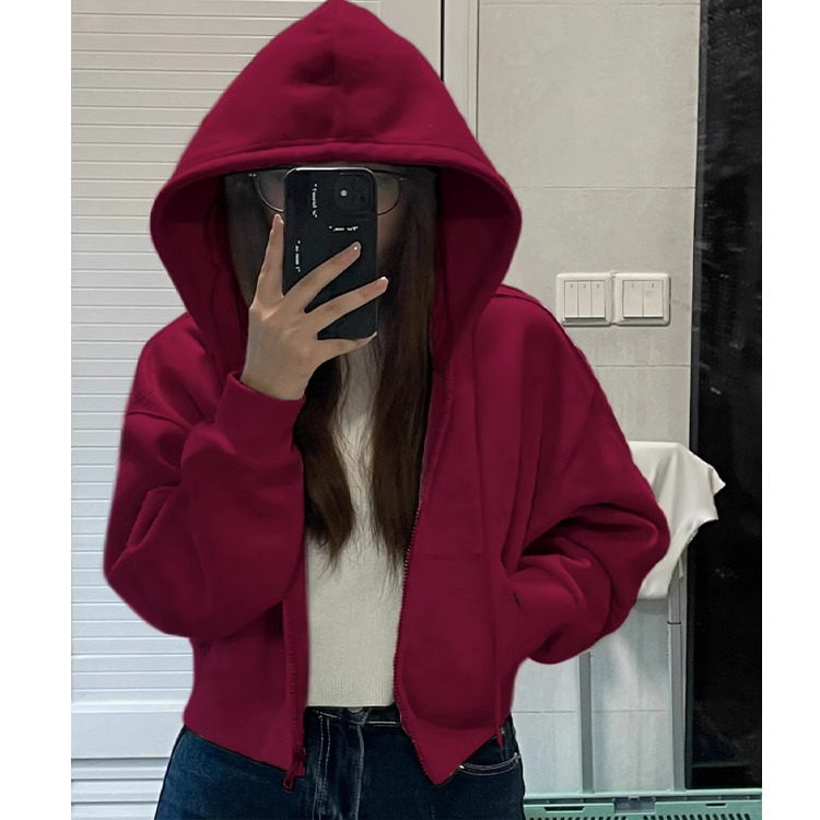 红色短款卫衣外套女款春秋季穿搭女2025新款薄款连帽正肩上衣冬天