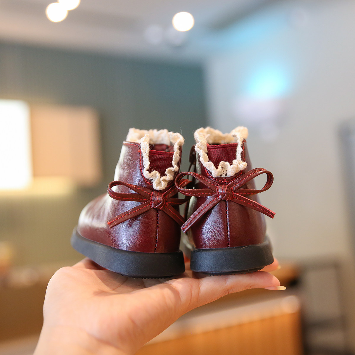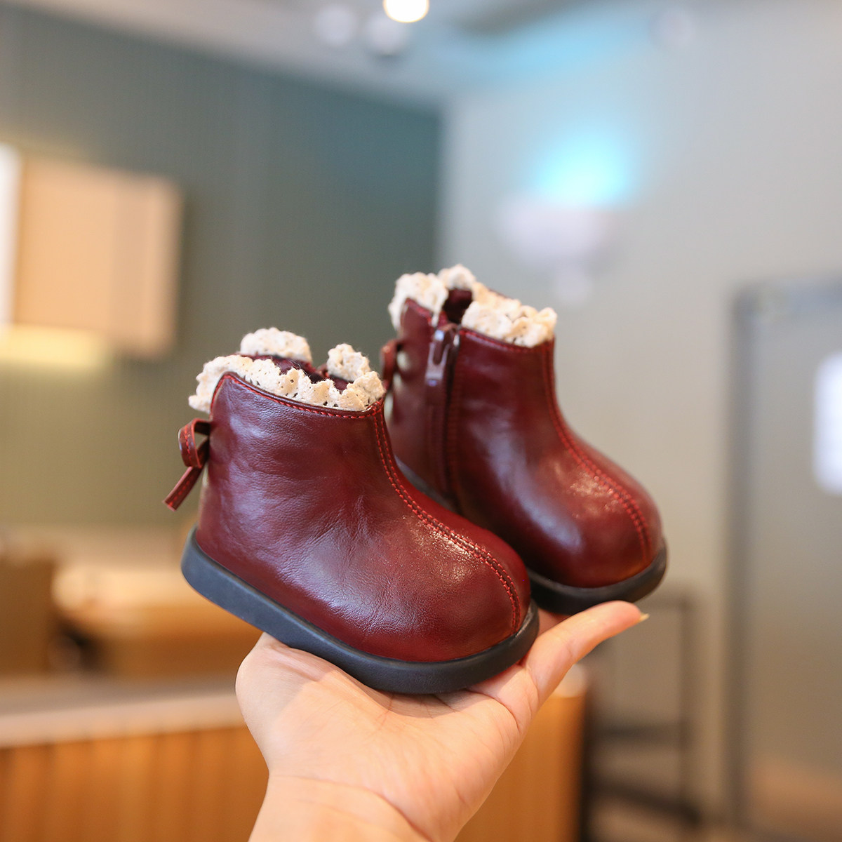 小步点女宝宝学步鞋冬季加绒棉鞋软底婴儿鞋子女童靴子红色新年鞋