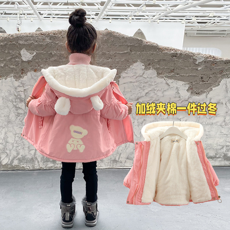 女童冬装加绒外套2026新款儿童夹棉派克服韩版棉衣宝宝仿兔毛棉服