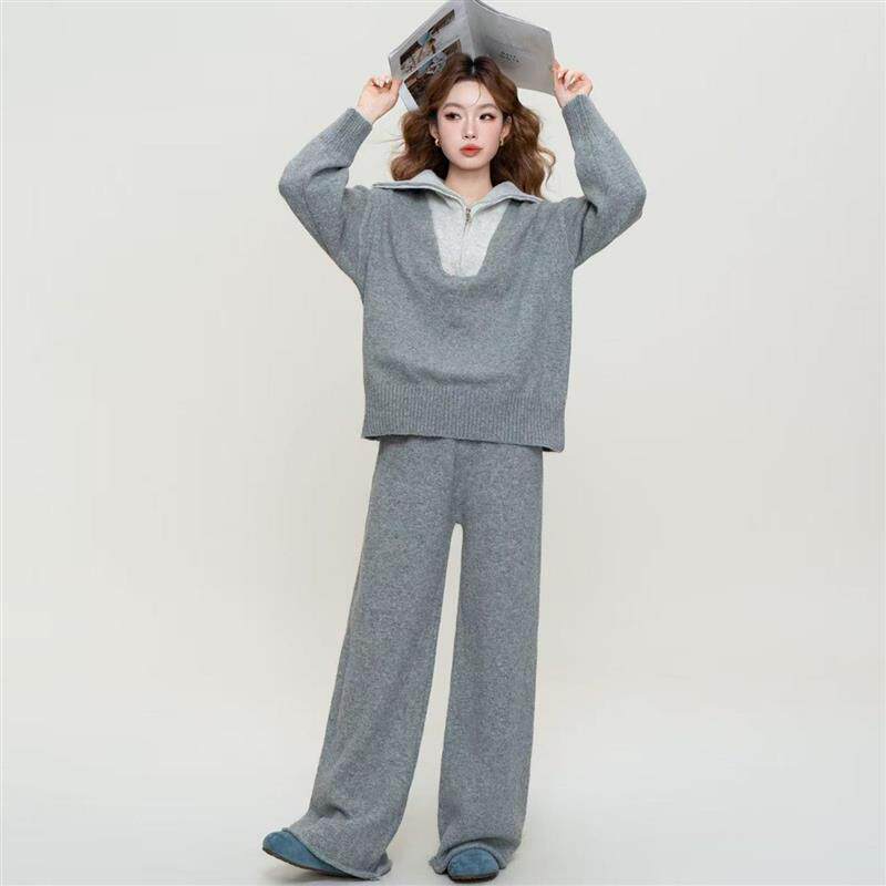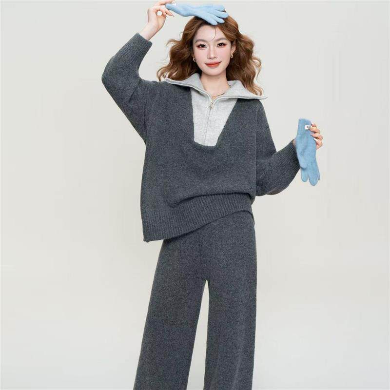 高级感穿搭套装冬装2025新款时尚洋气时髦拼接慵懒风毛衣秋冬女装