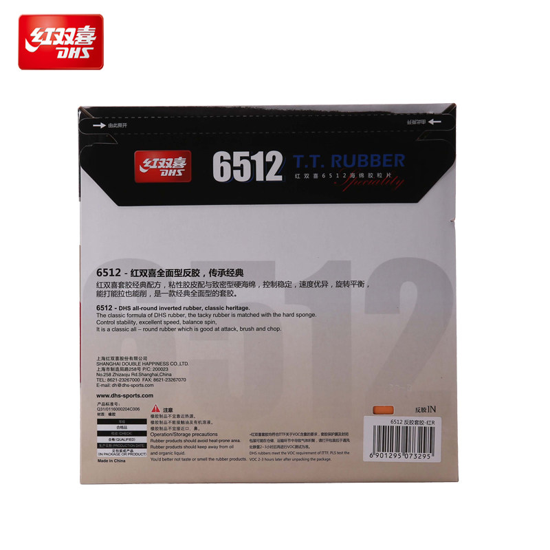 红双喜乒乓球拍胶皮DHS乒乓球胶皮反胶套胶6512胶皮快攻弧圈套胶