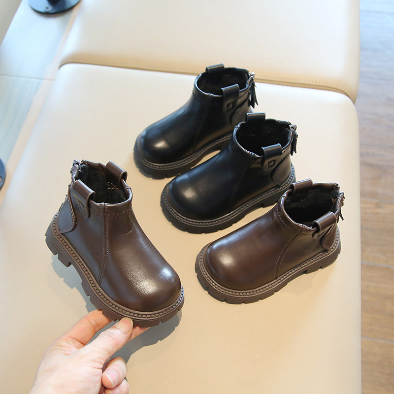 冬季新款皮鞋加绒女童马丁靴加厚2一6岁女童公主皮靴保暖棉鞋童鞋