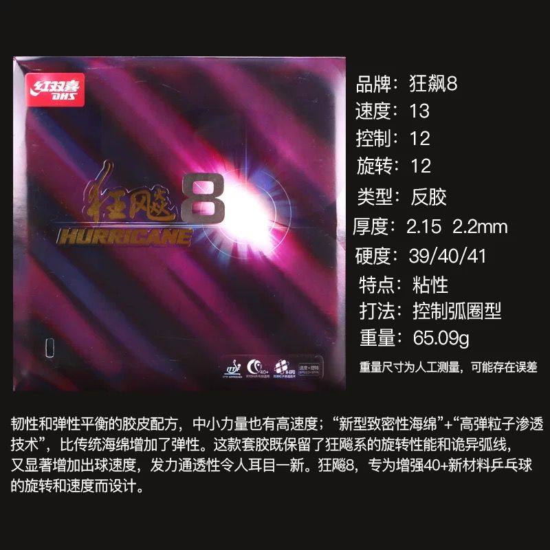 红双喜乒乓球拍胶皮狂飙8八胶皮高粘性速度型弧圈快攻套胶反胶