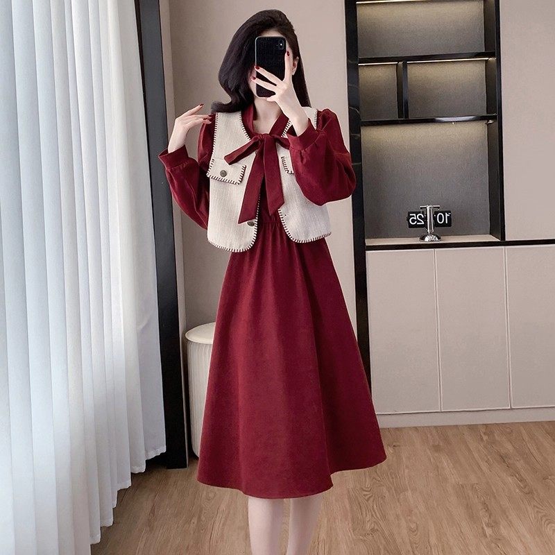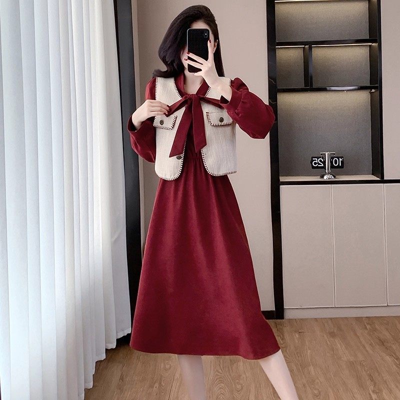 小香风红色套装连衣裙女春秋冬2025新款两件套爆款流行网红小个子