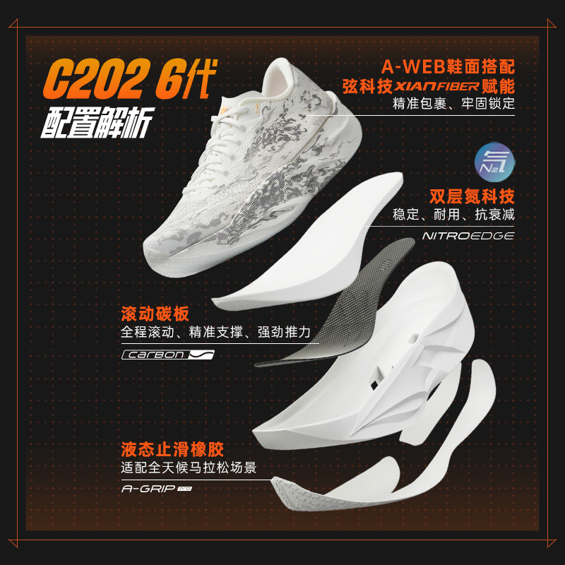 安踏C202 6代拨云见日月丨专业马拉松竞速碳板跑步鞋男112535575