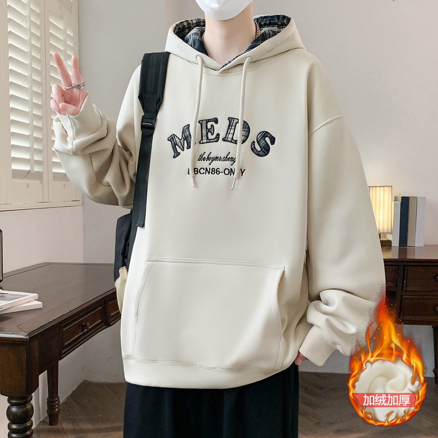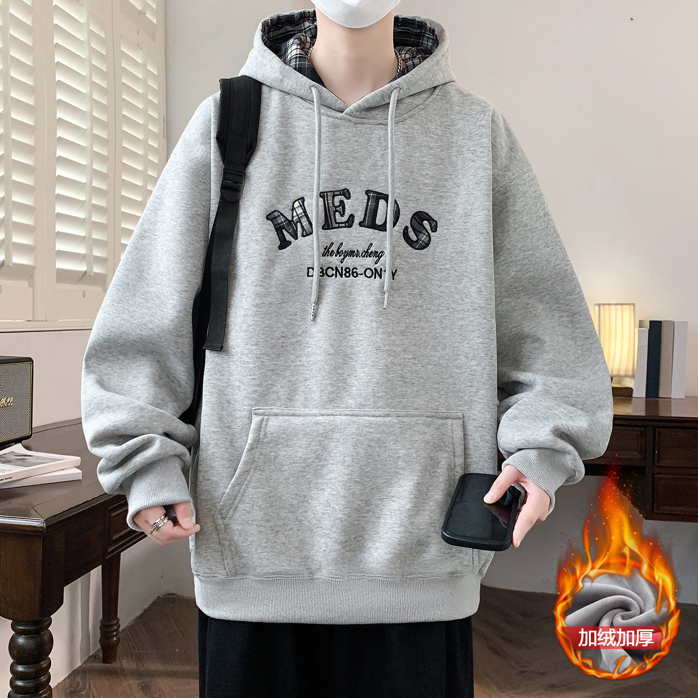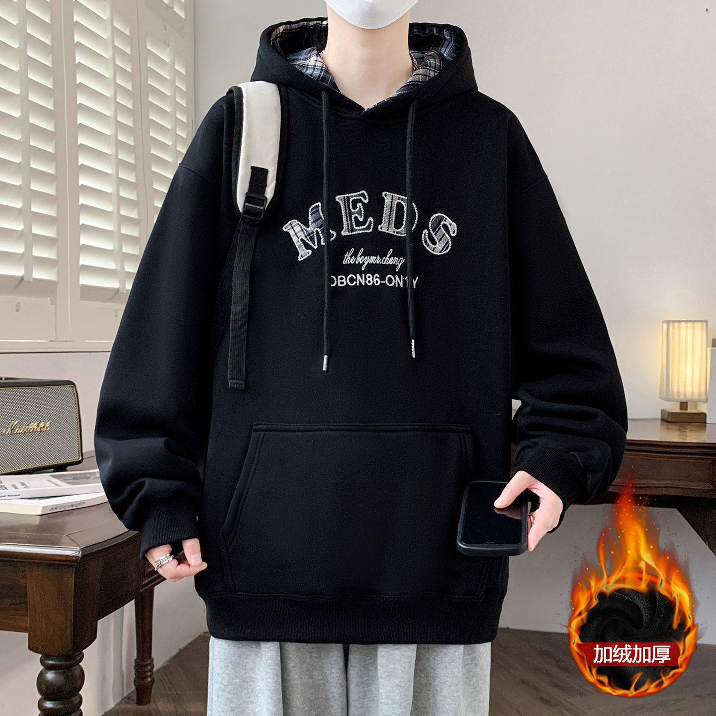 青少年红色卫衣男款2026新款加绒加厚初高中男学生冬季高级感上衣