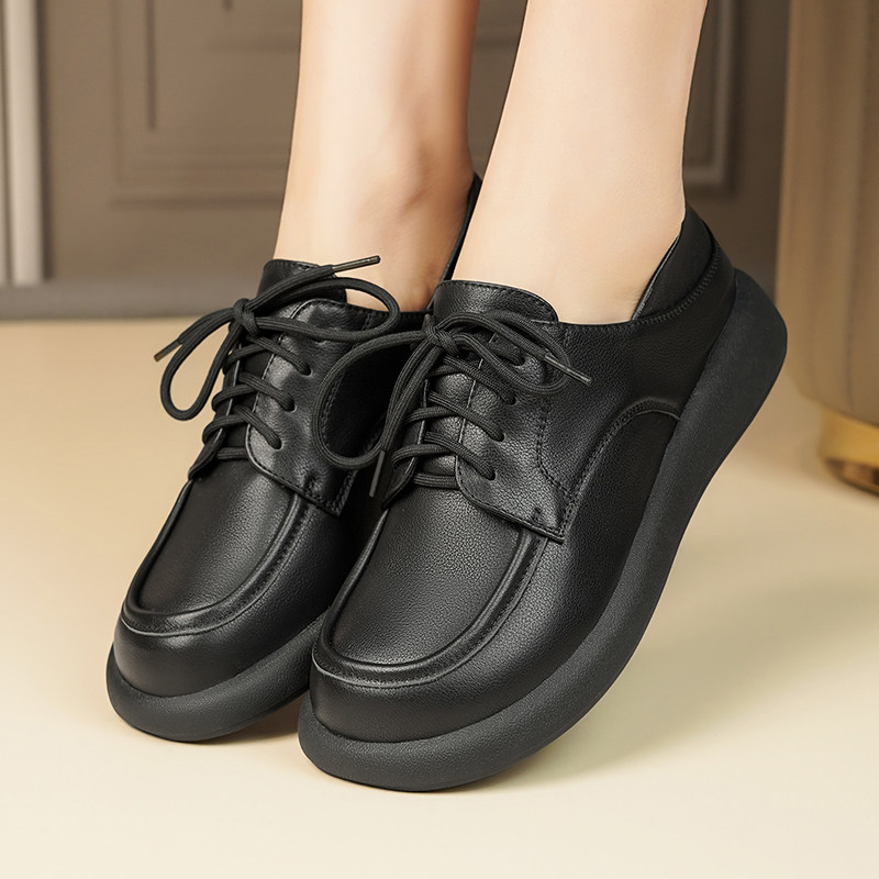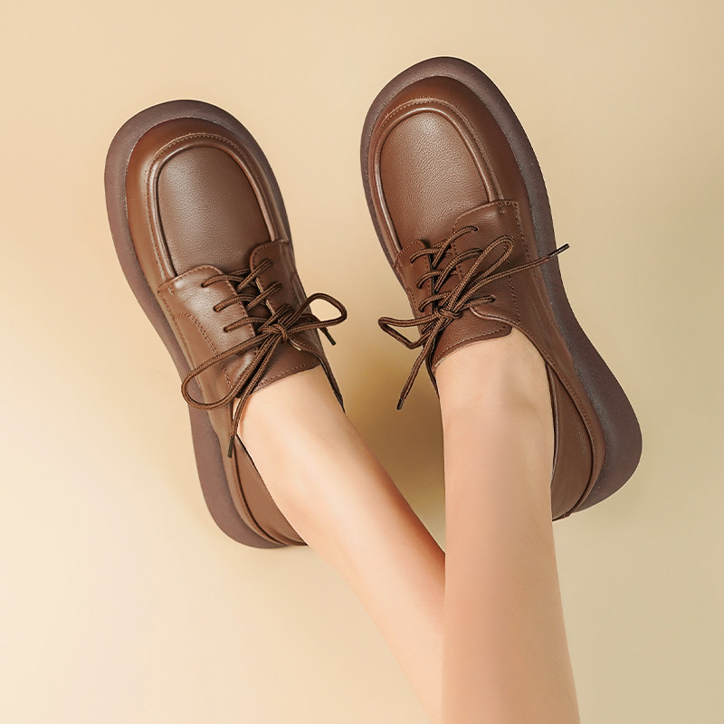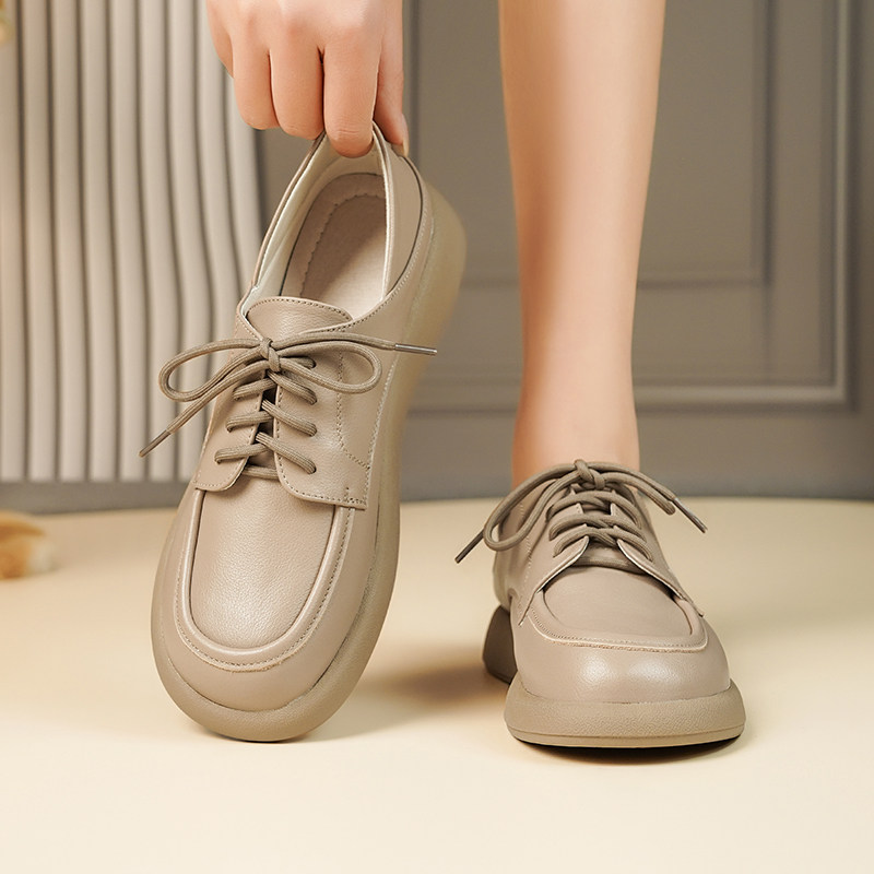真皮乐福鞋女2026春秋季新款系带平底单鞋英伦风一脚蹬软底小皮鞋