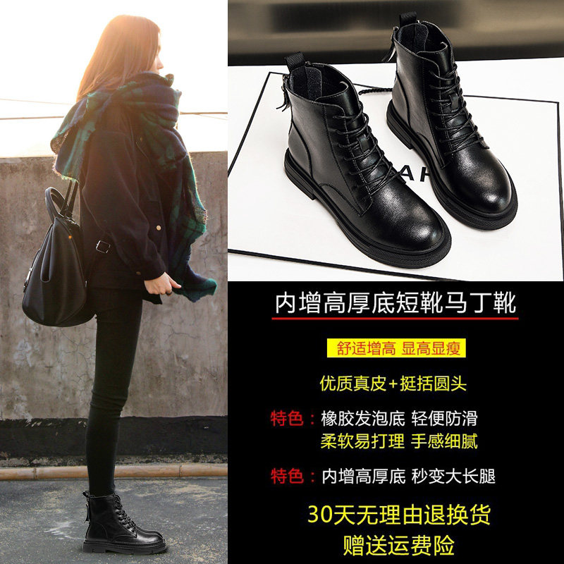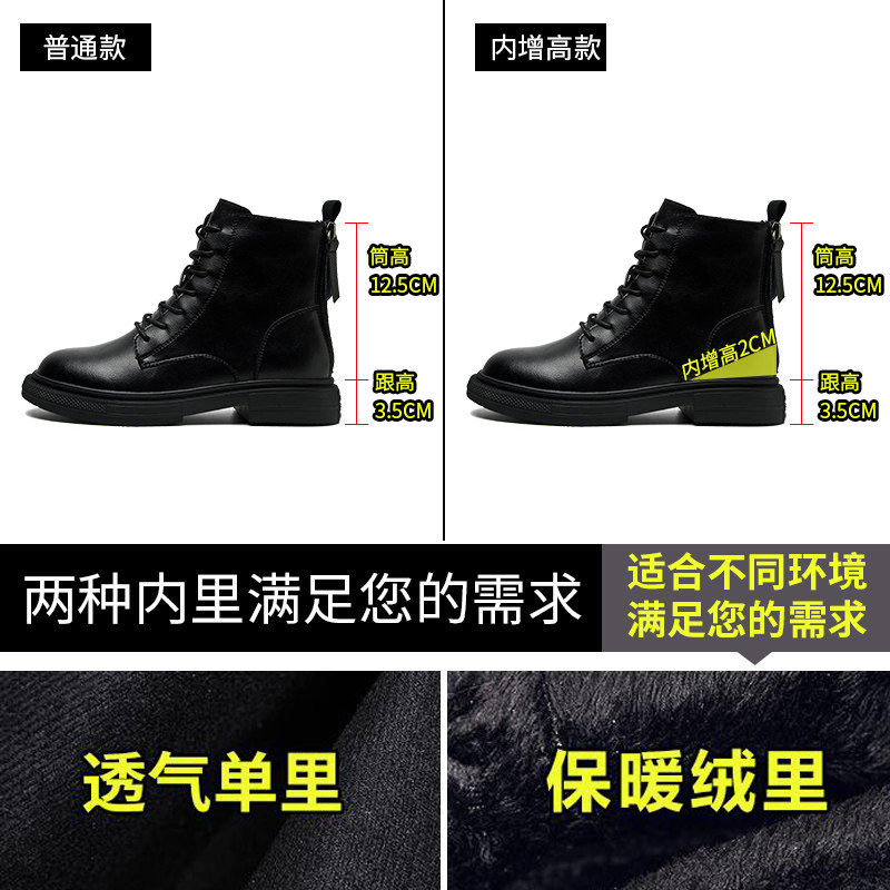 真皮马丁靴女秋冬加绒内增高2026年爆款新款时尚洋气英伦风短靴子