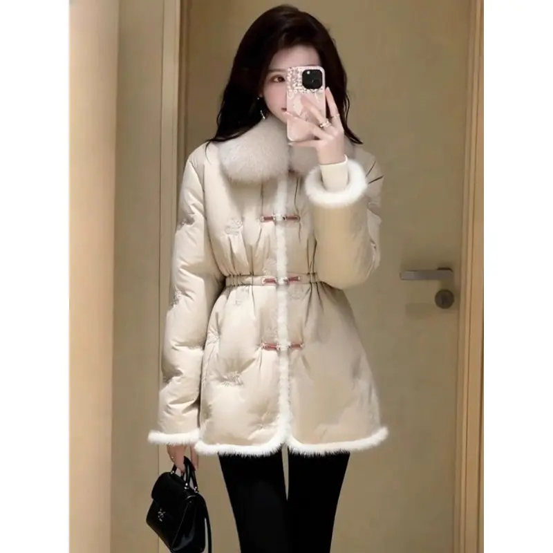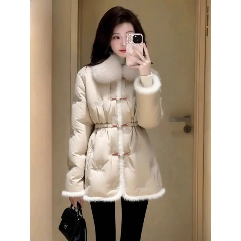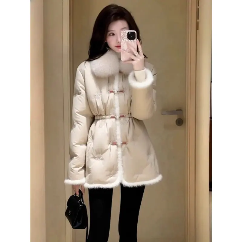 轻奢冬季棉服女款新款独特超好看高端时髦中长款收腰杏色加厚外套