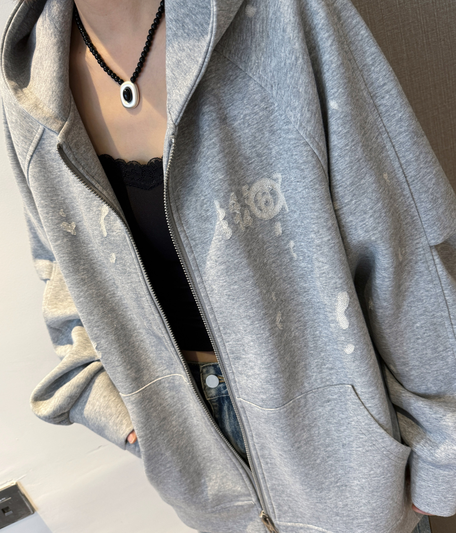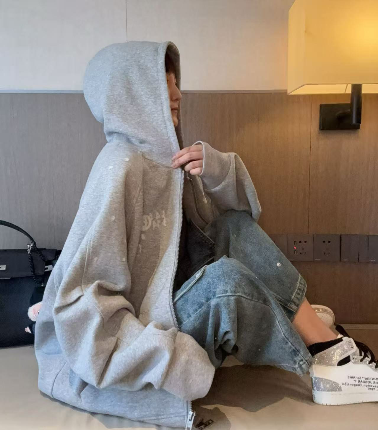 女款拉链连帽带帽情氛围感卫衣长袖高级感宽松休闲灰色