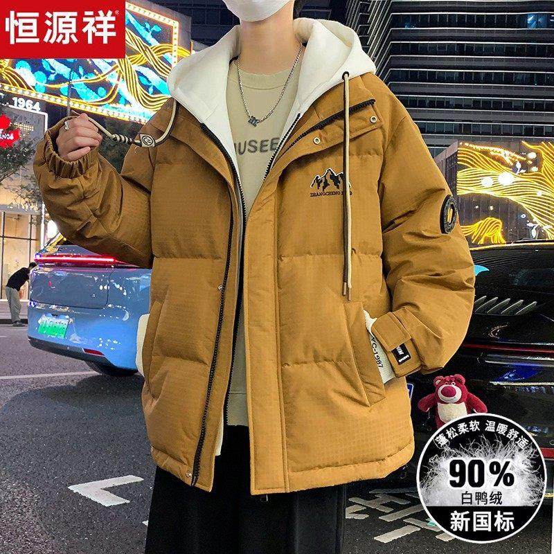 恒源祥初中生羽绒服男冬季青少年2024款防水潮牌连帽假两件防寒服