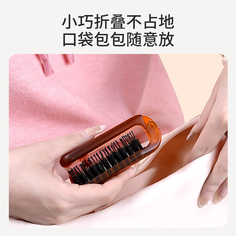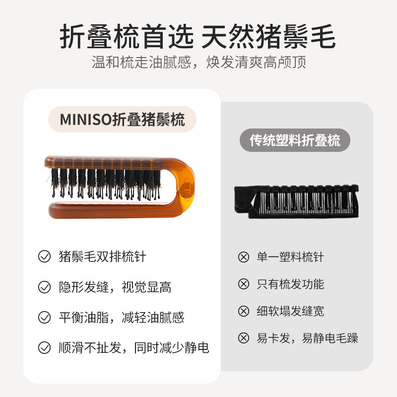 MINISO名创优品梳子猪鬃毛折叠梳迷你便携小随身蓬松鬃毛梳小梳子