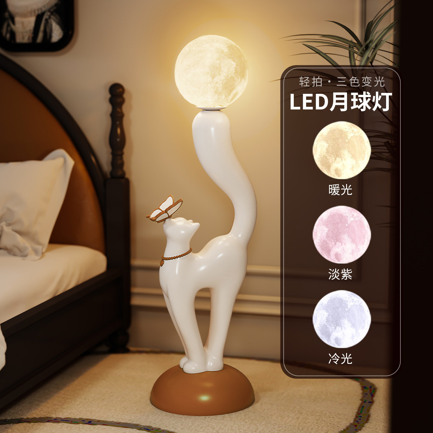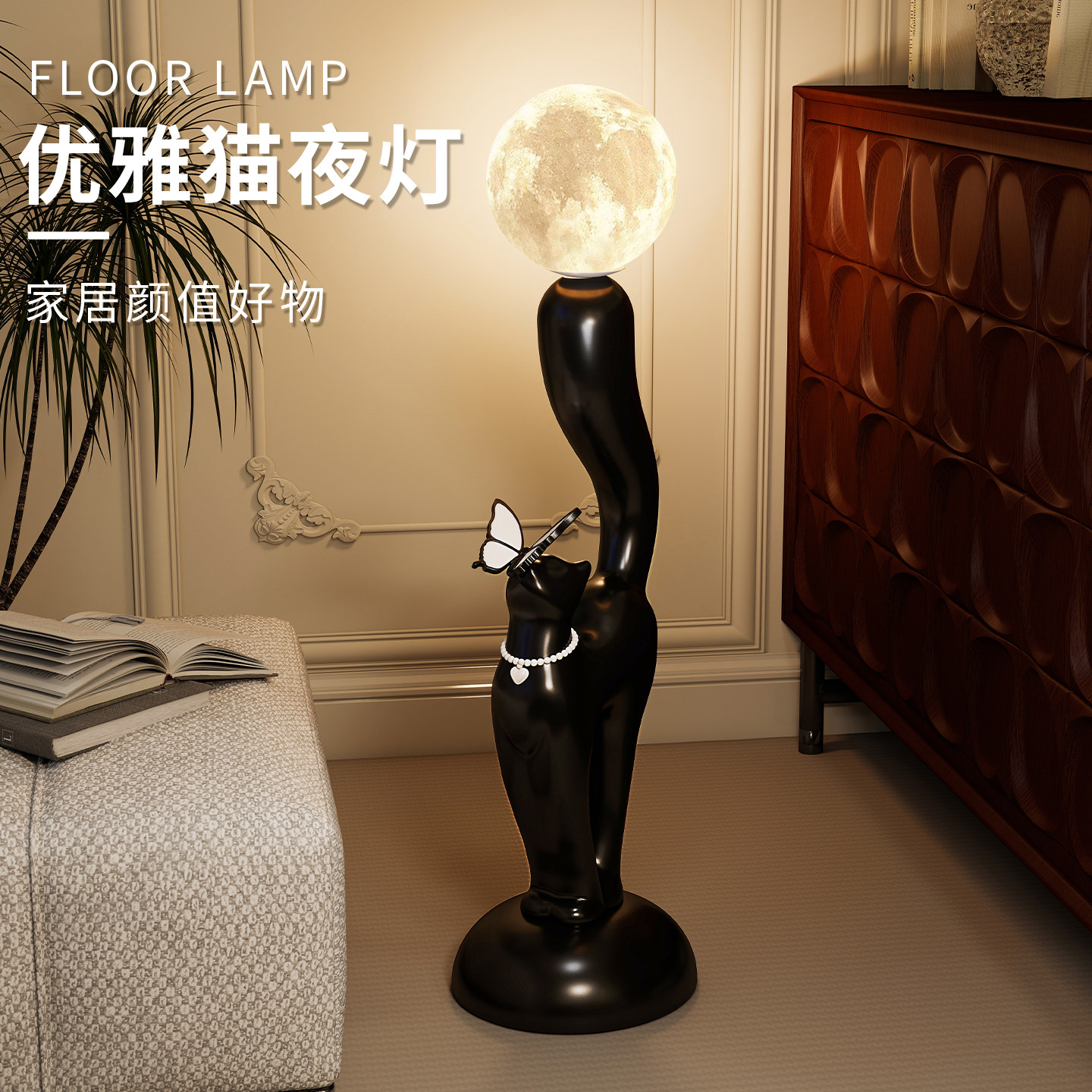 创意猫咪落地灯法式复古落地摆件客厅沙发旁立式台灯高级感装饰品