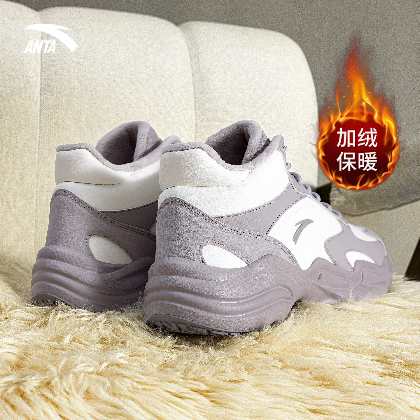 安踏女鞋棉鞋厚底新款皮面冬季运动大棉鞋加厚加绒保暖女鞋雪地靴