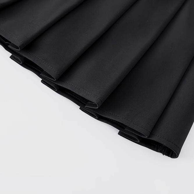 外贸 复古学院网球风定型百褶裙高腰黑色百搭A字裙防走光半身短裙