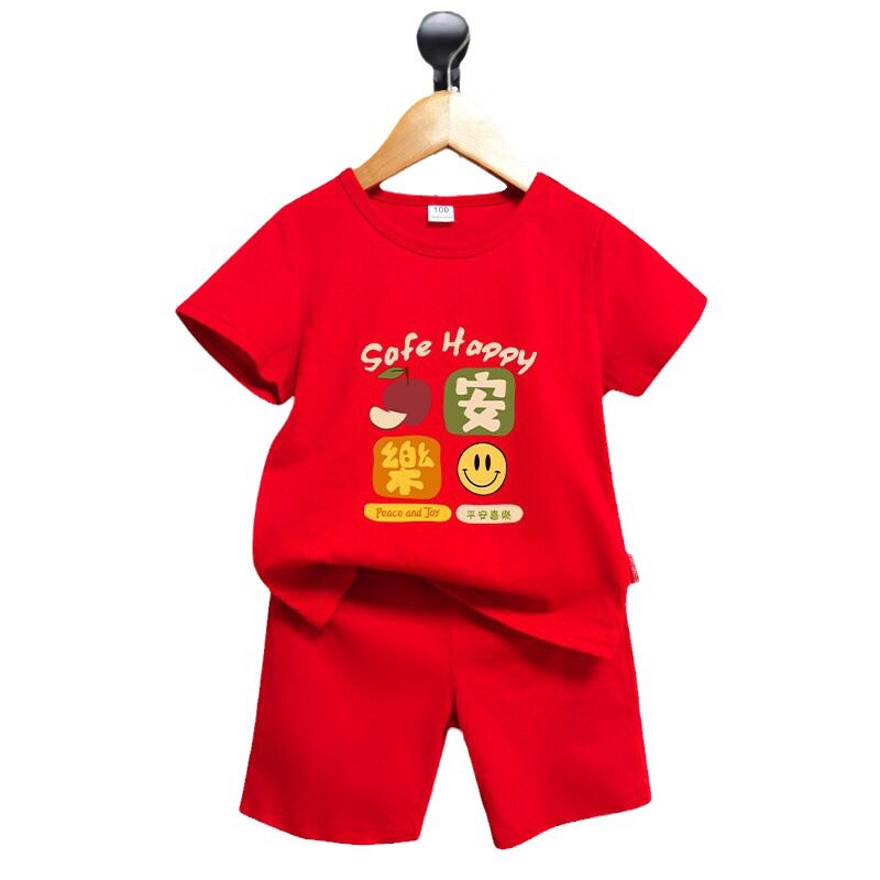 儿童红色短袖套装纯棉男童女童本命年衣服兄妹姐弟新年喜庆拜年服