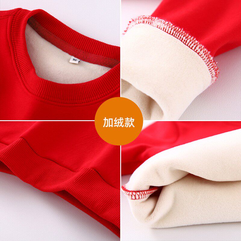 男童红色卫衣加绒女童中国红上衣马年本命年衣服亲子装一家三四口