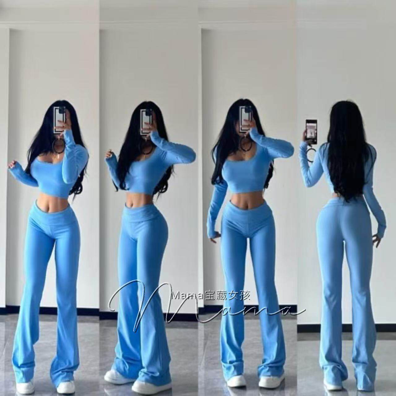 宝藏女孩细螺纹套装紧身透气长袖T恤背心瑜伽服高腰提臀短裤长裤