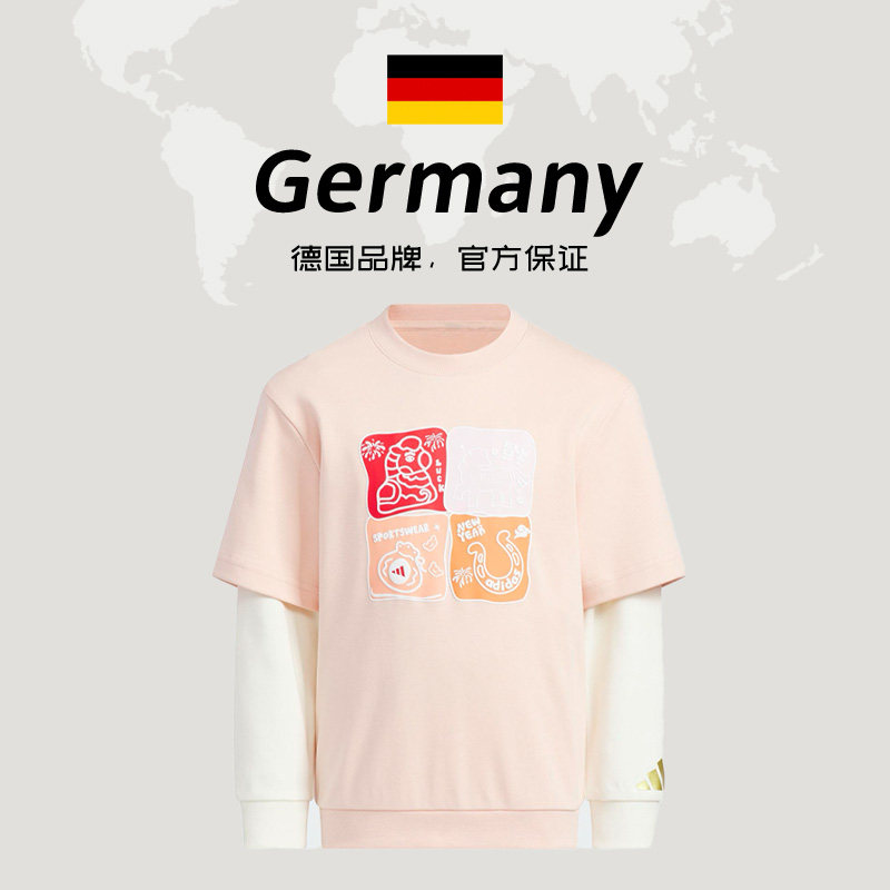 【自营】阿迪达斯马年新年款男女儿童红色上衣童装宽松卫衣KV6980