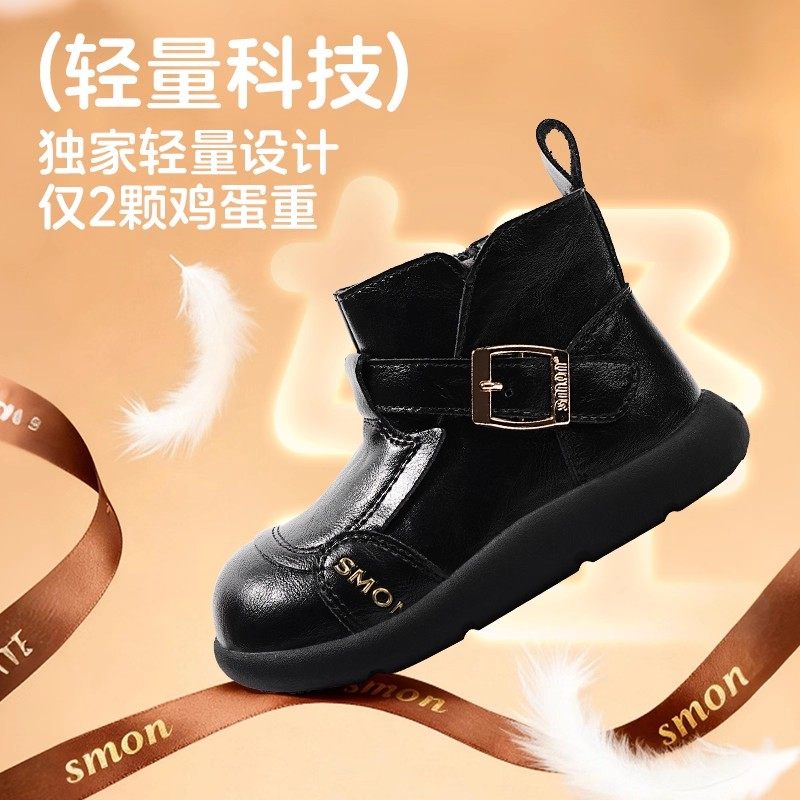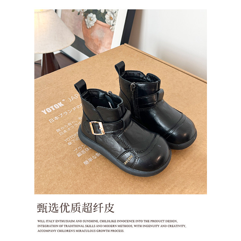 书萌女童靴子秋冬季新款儿童鞋子英伦风皮靴女宝宝短靴小女孩皮鞋