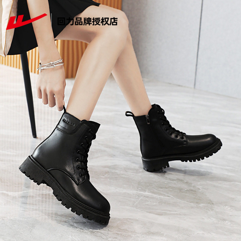 回力品牌正品马丁靴女2025冬季女士厚底马丁鞋黑色英伦风女鞋女款