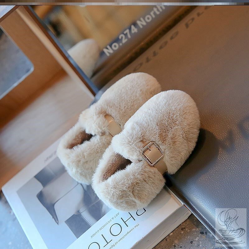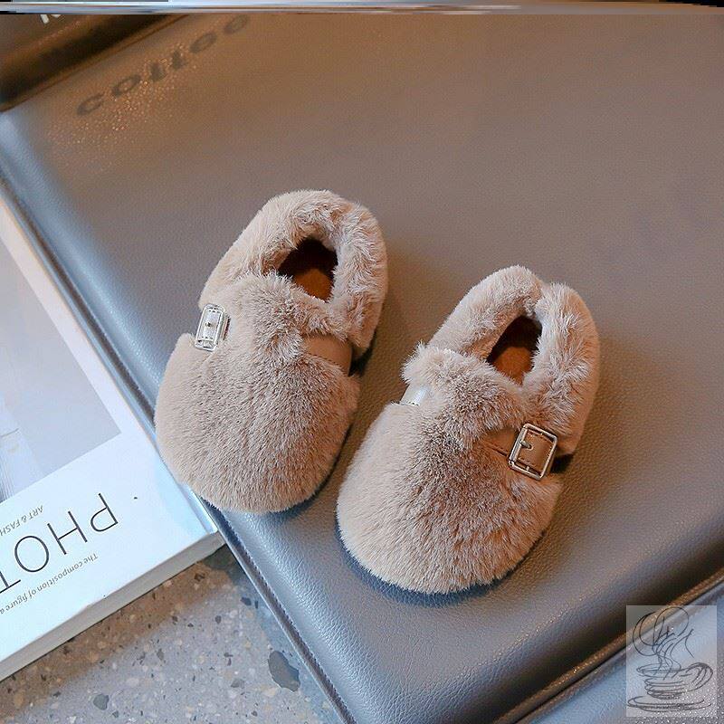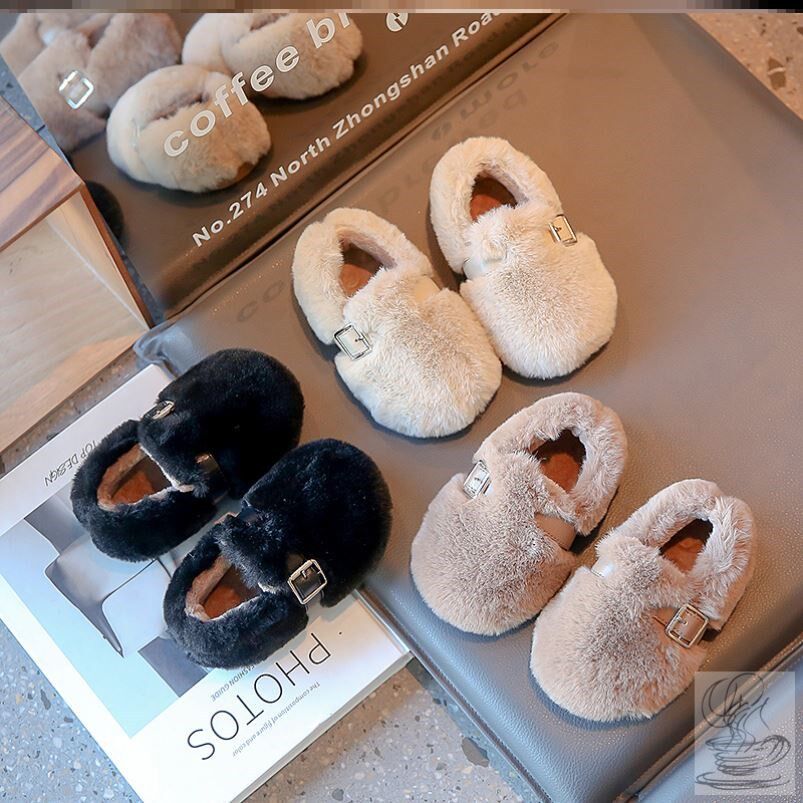 儿童毛毛鞋女童豆豆鞋子秋冬天加绒2024冬季新款宝宝棉鞋女宝外穿