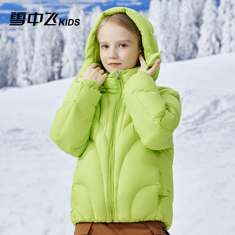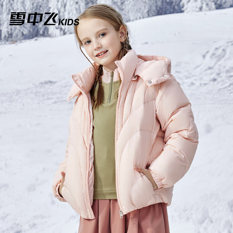 雪中飞kids女童羽绒服2024新款中大童冬季短款纯色加厚面包服女款
