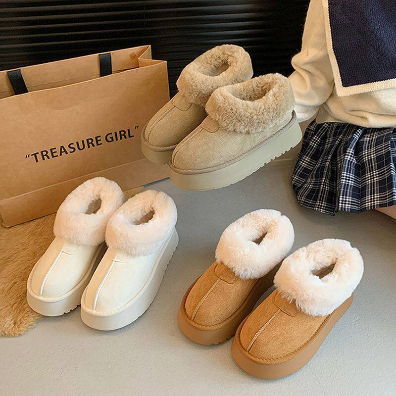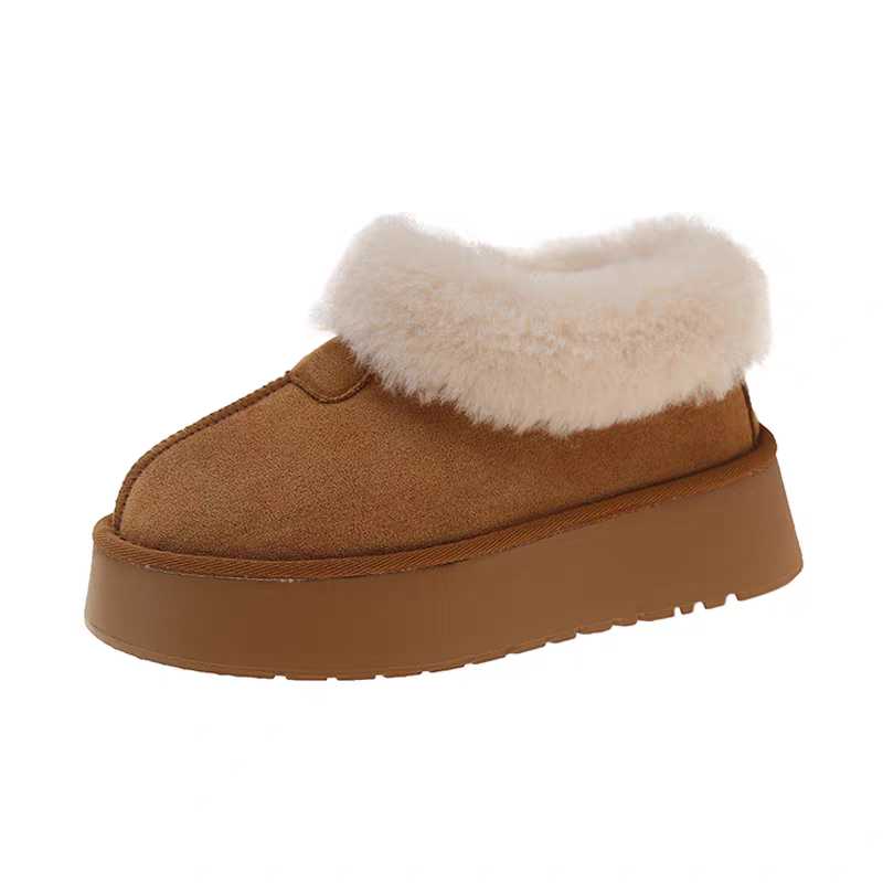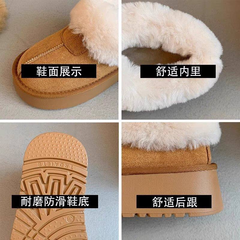 品牌撤柜真皮厚底雪地靴女2025新款冬季加绒加厚棉鞋一脚蹬毛毛鞋