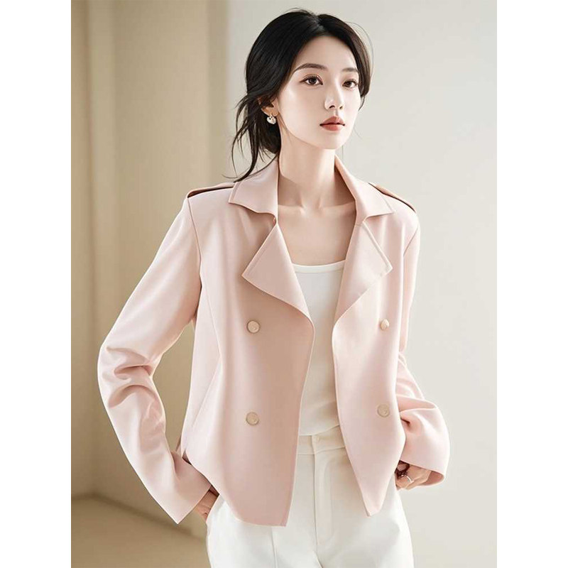 2026早春新款今年流行爆款韩系独特漂亮小个子粉色短款风衣外套女