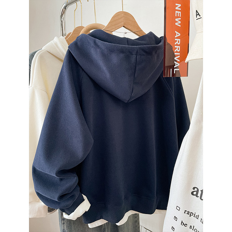 高级感小个子女士卫衣女款2026新款加绒加厚刺绣大码胖mm连帽上衣