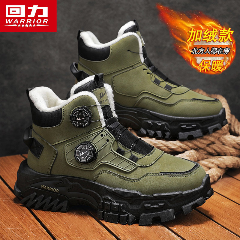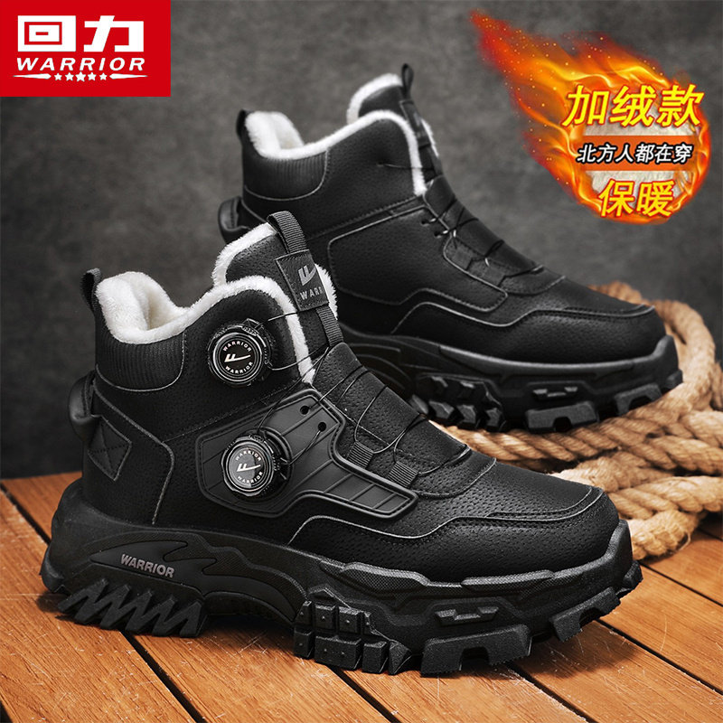 回力马丁靴男鞋冬季加绒加厚棉鞋旋钮扣高帮工装保暖鞋休闲雪地靴