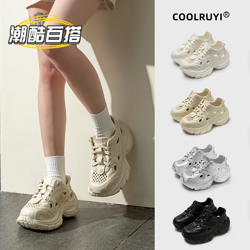 踩屎感洞洞鞋女款夏季厚底外穿增高老爹鞋沙滩防滑防臭eva凉鞋女