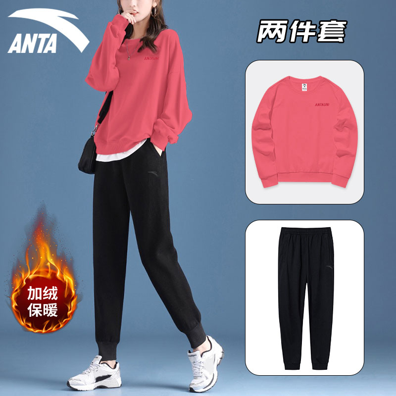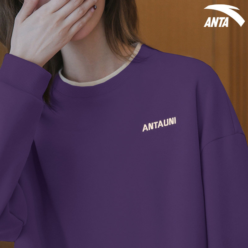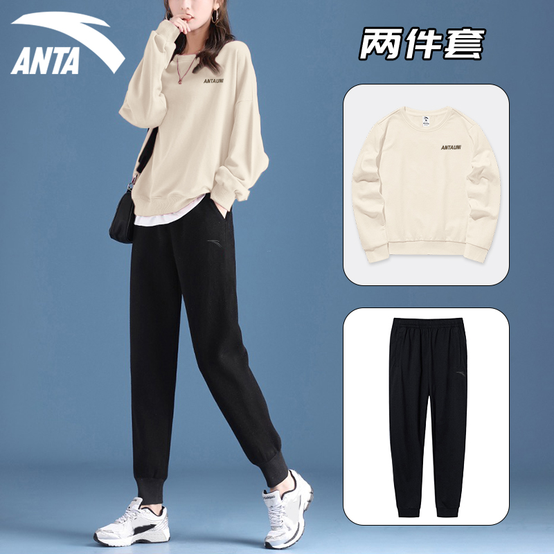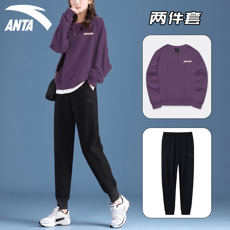 安踏紫色卫衣套装女美式学院风减龄洋气2025秋季新款一套长袖长裤