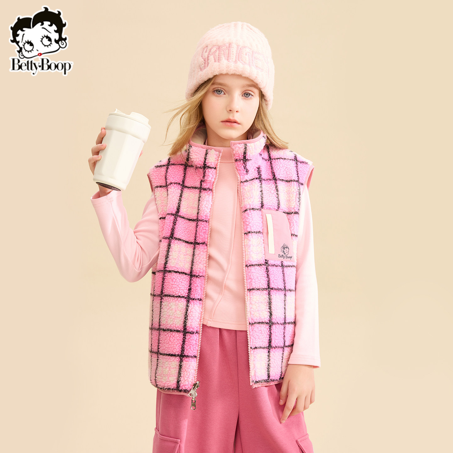 贝蒂女童春季双面穿马甲外套2026年春款新款儿童中大童格纹上衣