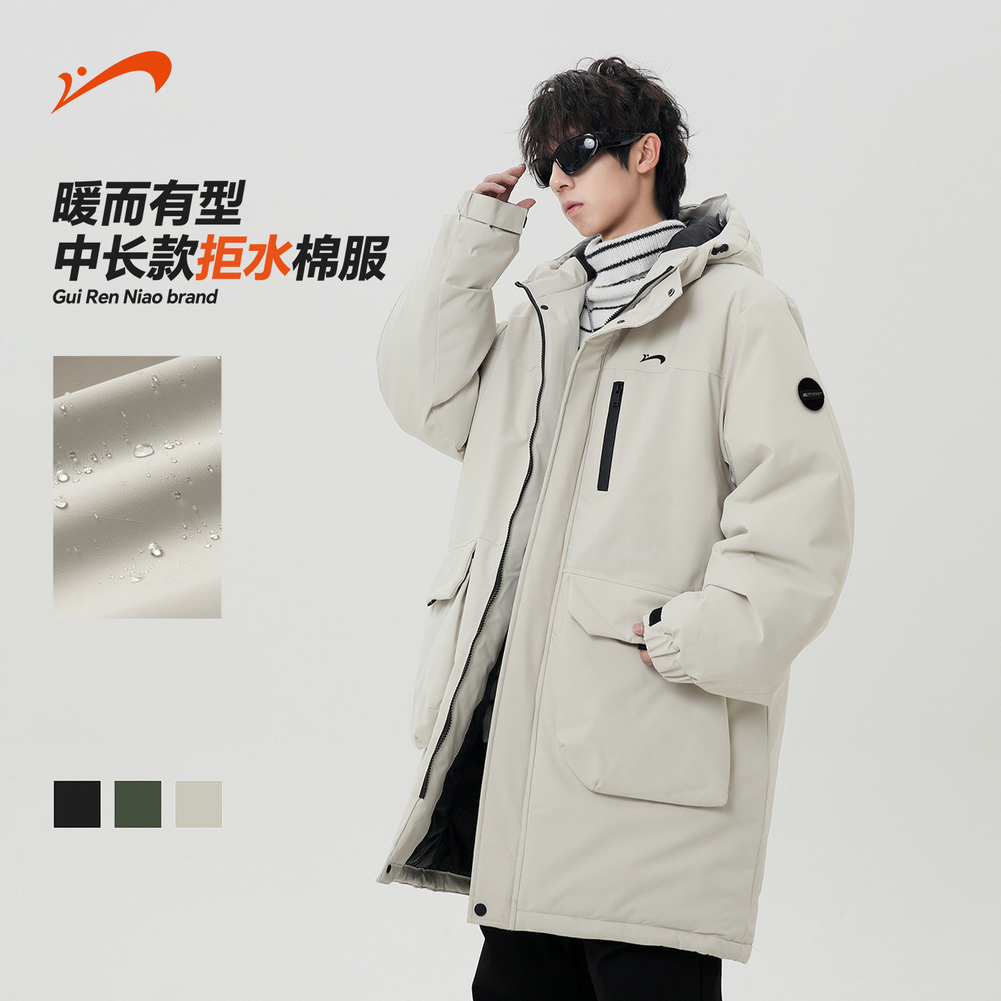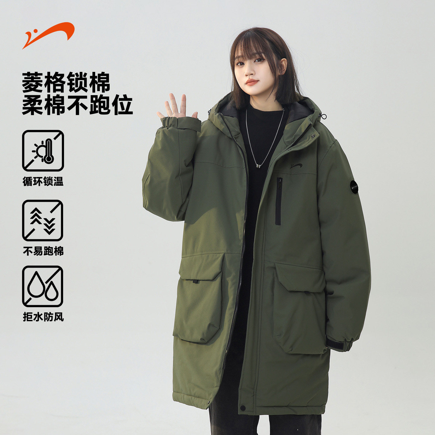 贵人鸟工装棉服男女款2025年新款中长款棉袄外套女士冬装棉大衣男