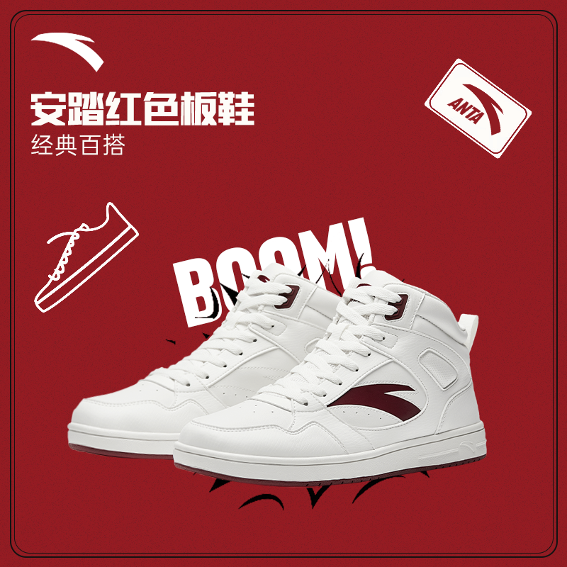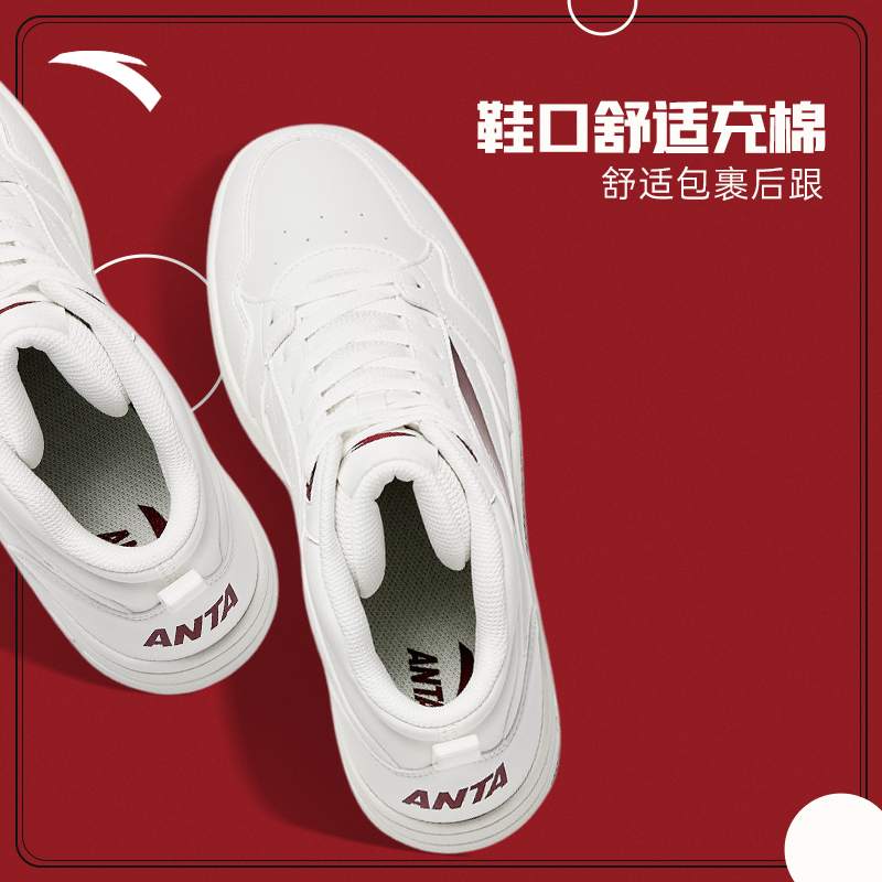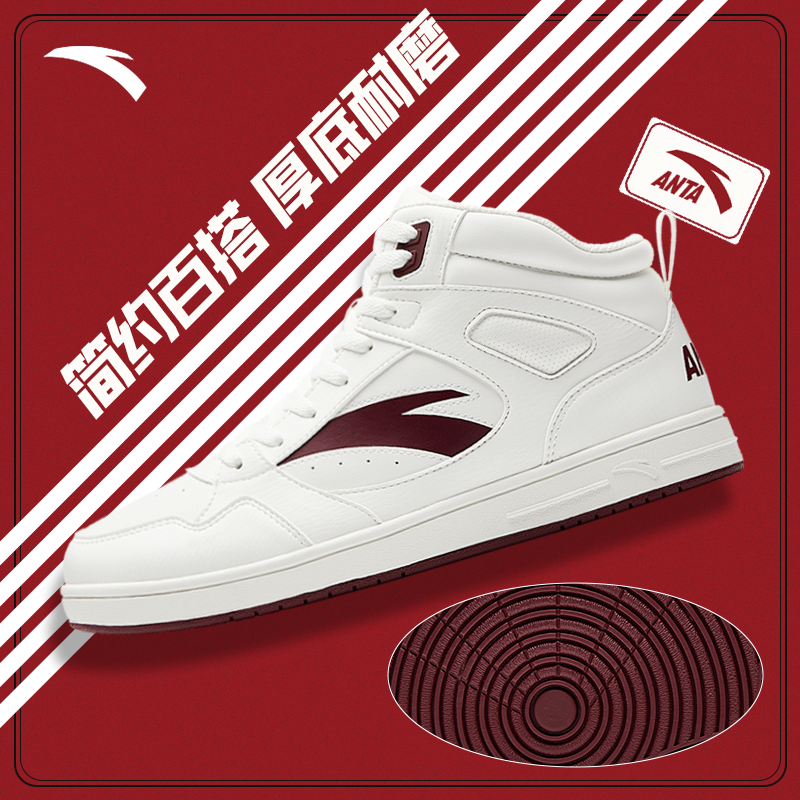 311线报网描述:安踏高帮板鞋 厚底增高 橡胶大底 耐磨防滑