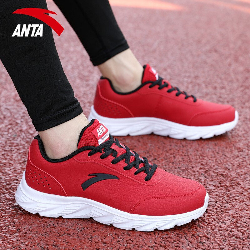 安踏男鞋运动鞋冬季男士皮面百搭鞋子轻便耐磨跑鞋休闲红色跑步鞋