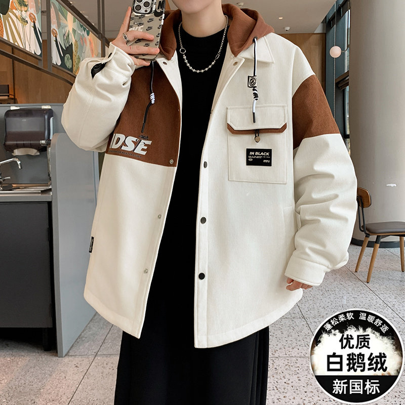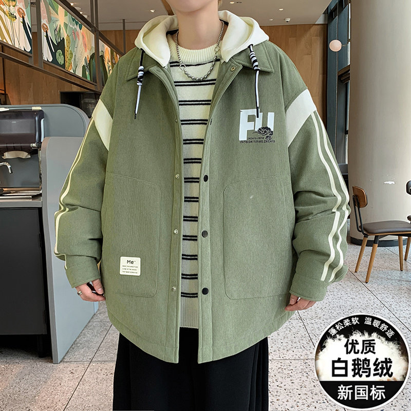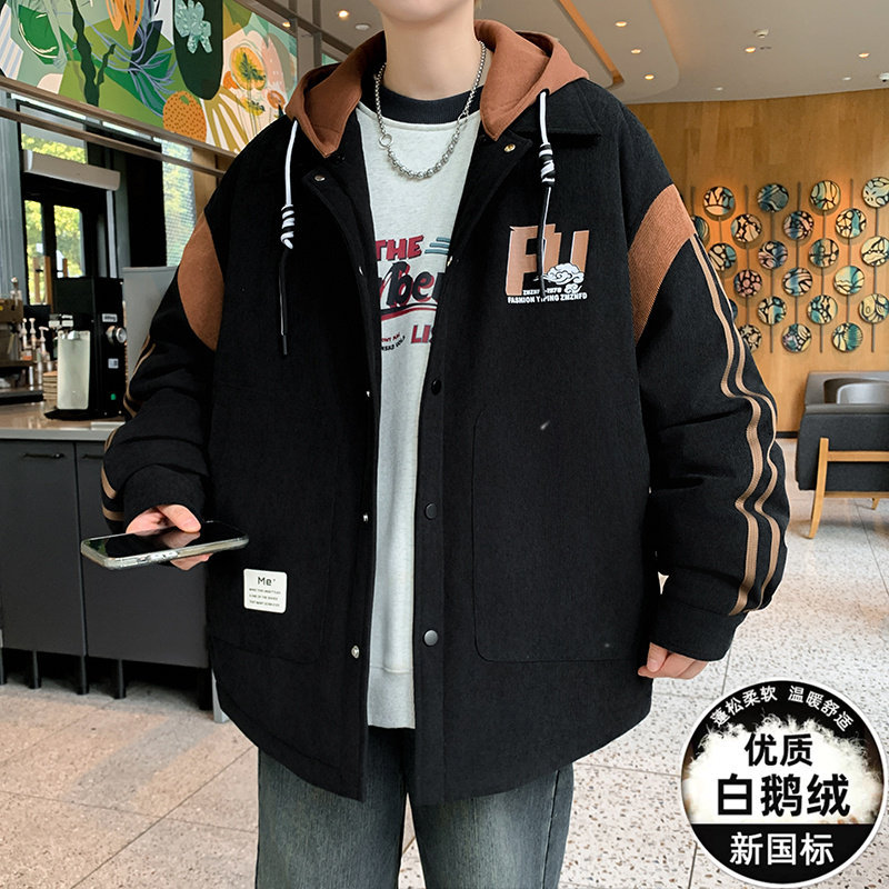 冬季鹅绒羽绒服男款初中高中学生加厚外套青少年帅气冬装防寒服