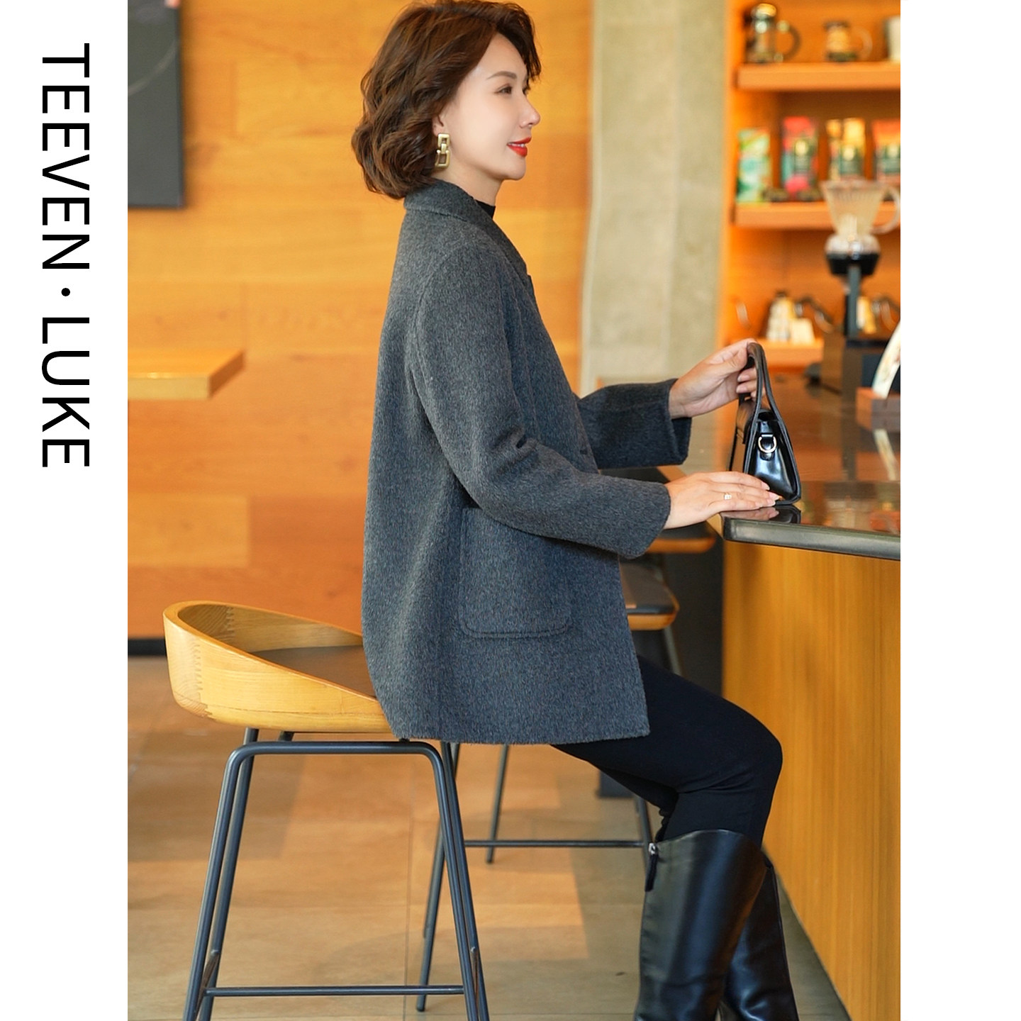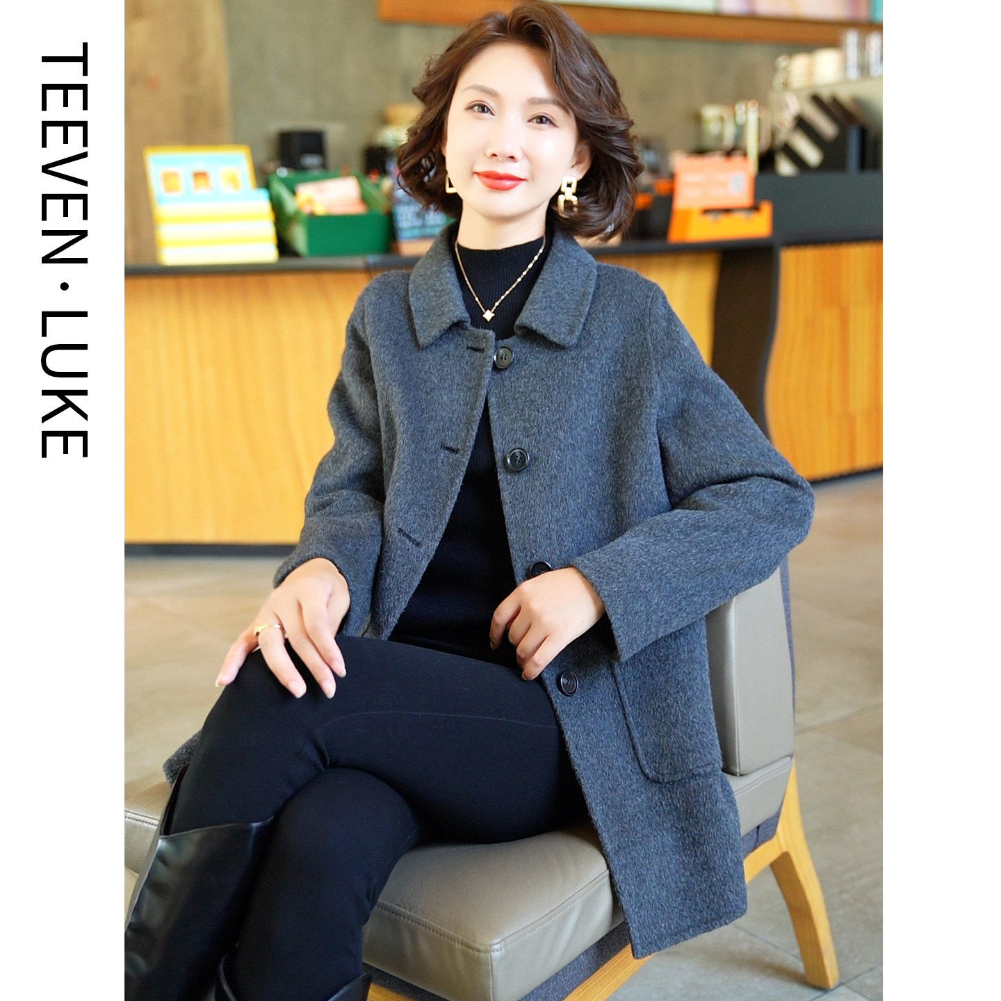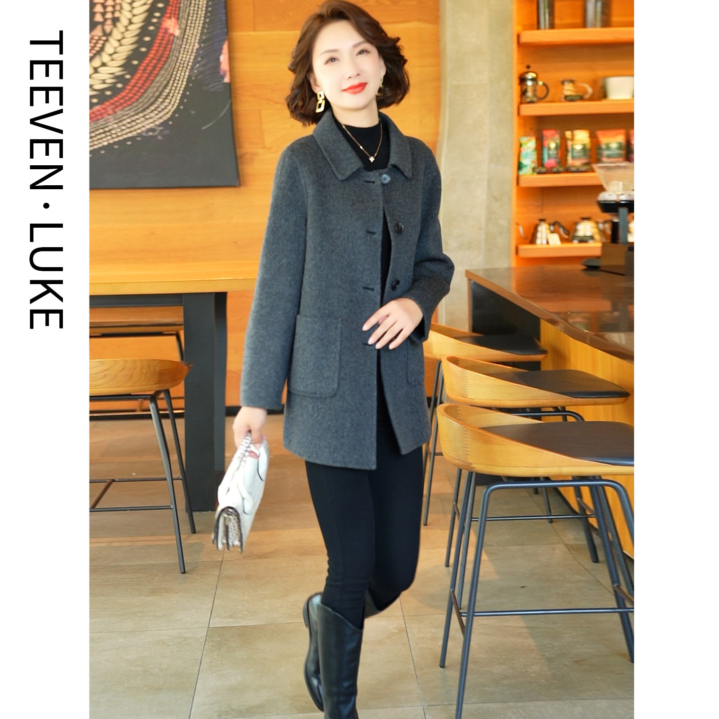 中老年妈妈2025秋冬新款双面羊毛呢短款大衣小个子显高毛呢外套女