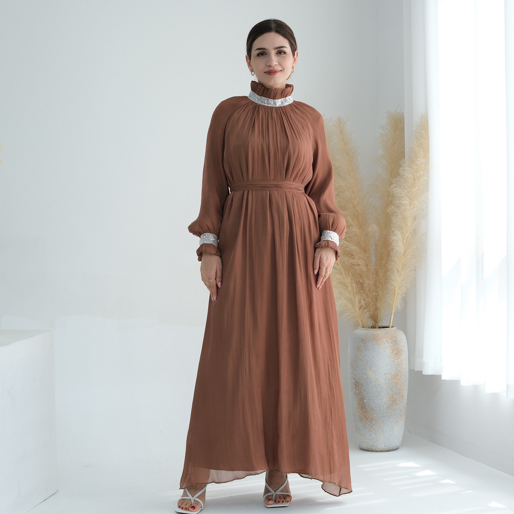 纯色少女girl迪拜中东土耳其迪拜精美纯色系带到脚踝的长款连衣裙