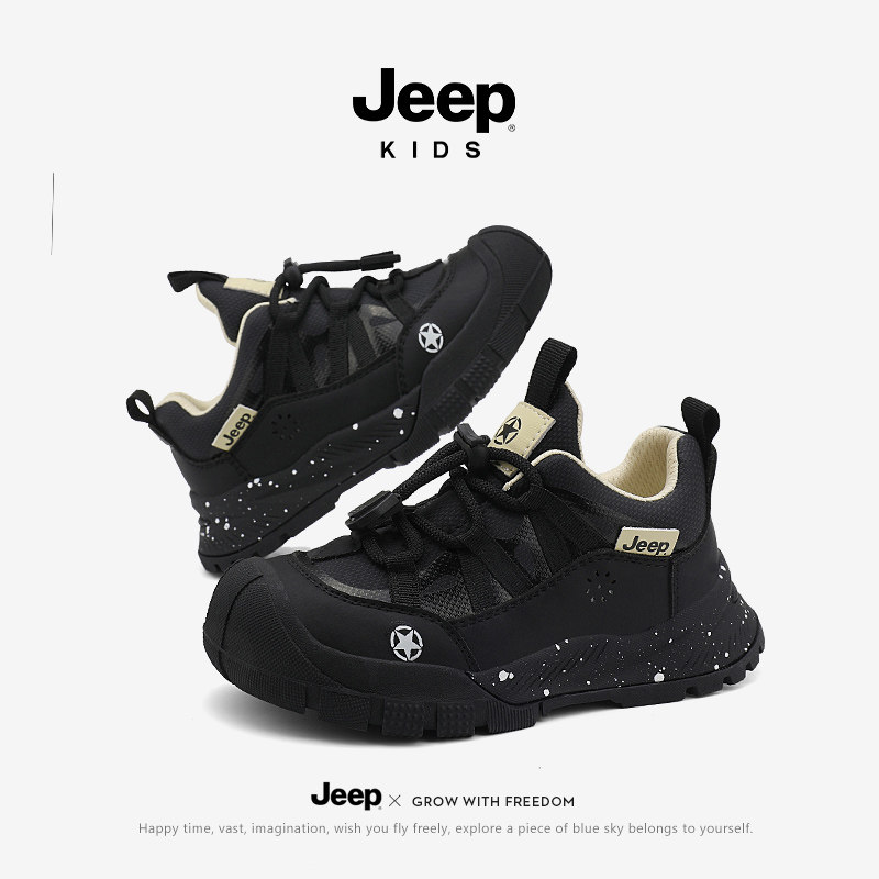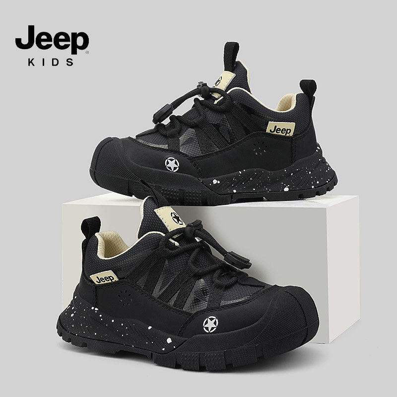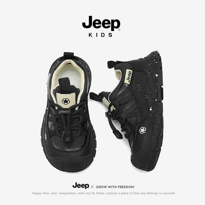 Jeep男童黑色运动鞋秋冬防滑软底跑步女童2026新款春秋儿童鞋轻便