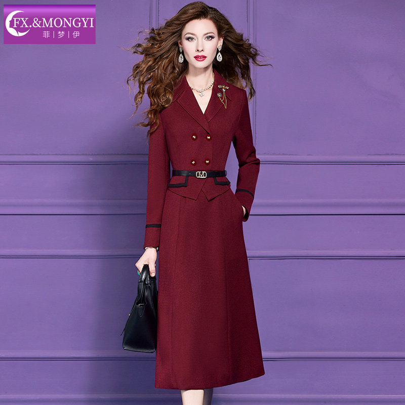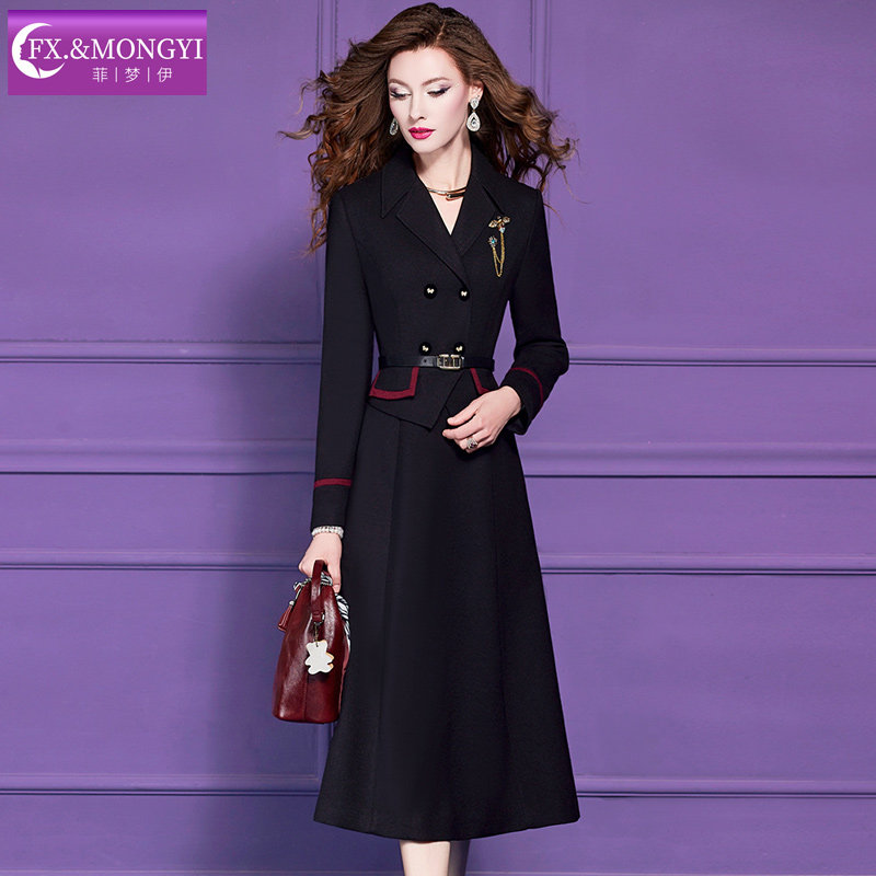 【直播专享】菲梦伊原创黑色西装领连衣裙女冬季收腰中长款大衣