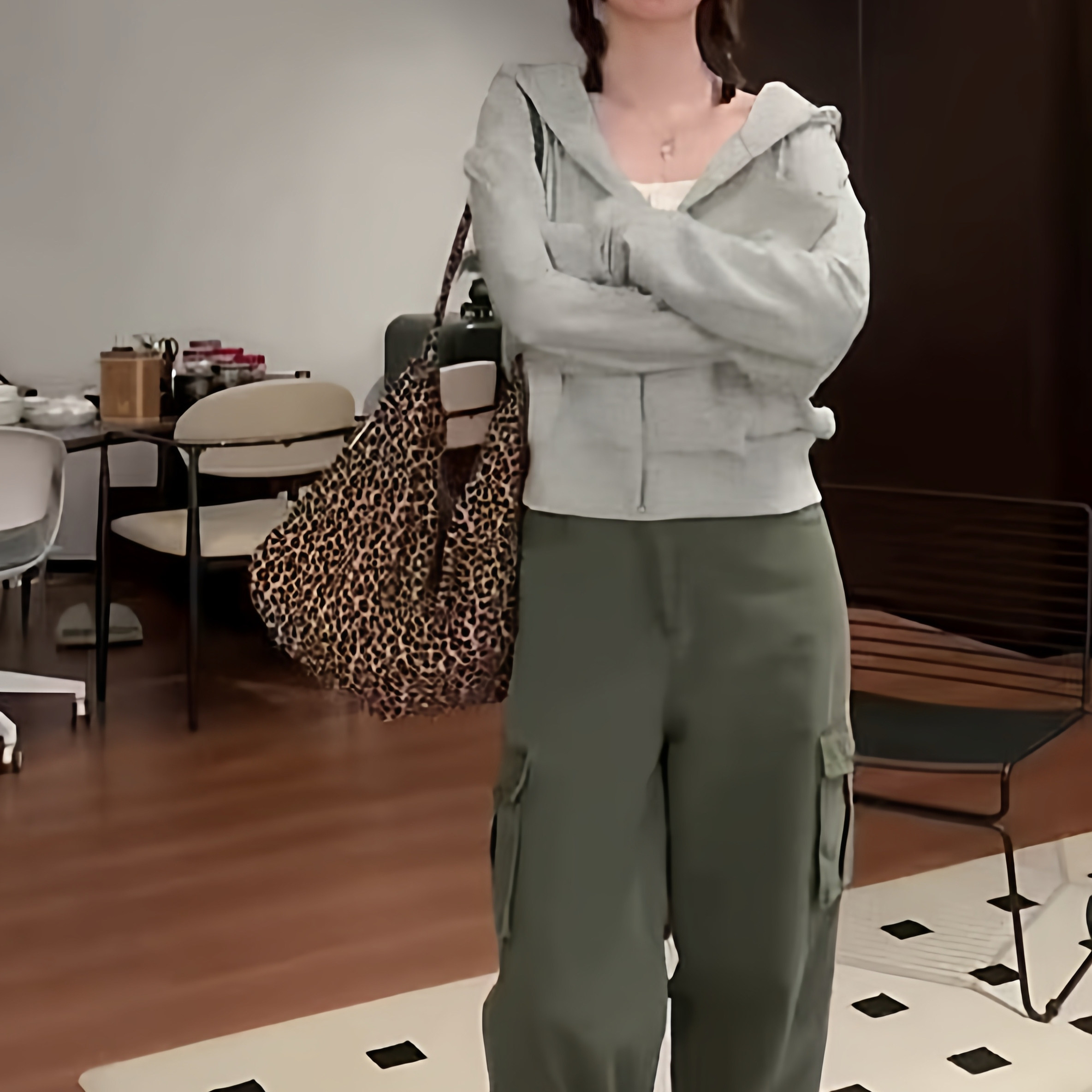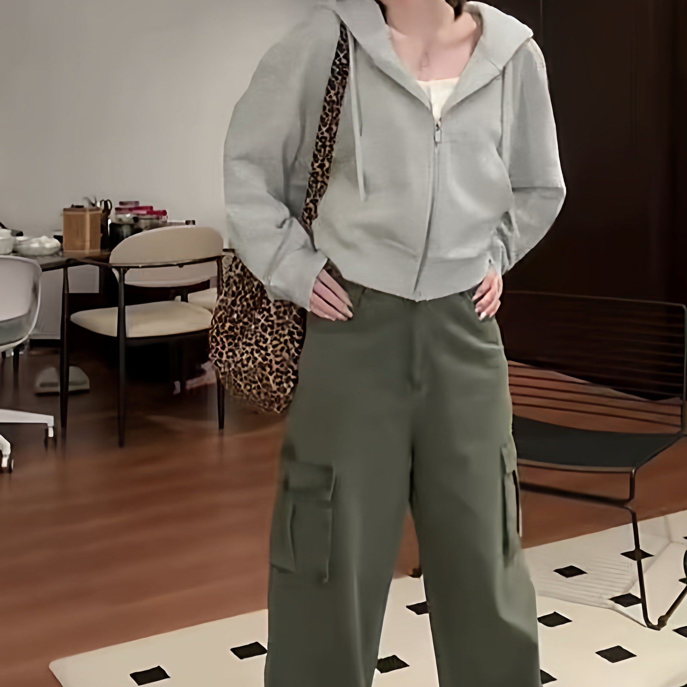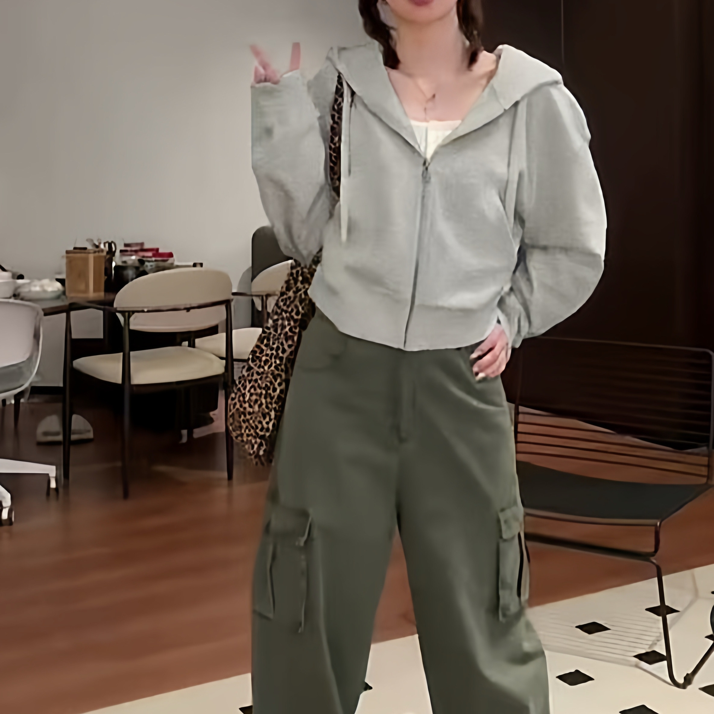 灰色短款连帽卫衣拉链外套女款秋修身小个子开衫薄款上衣早秋穿搭