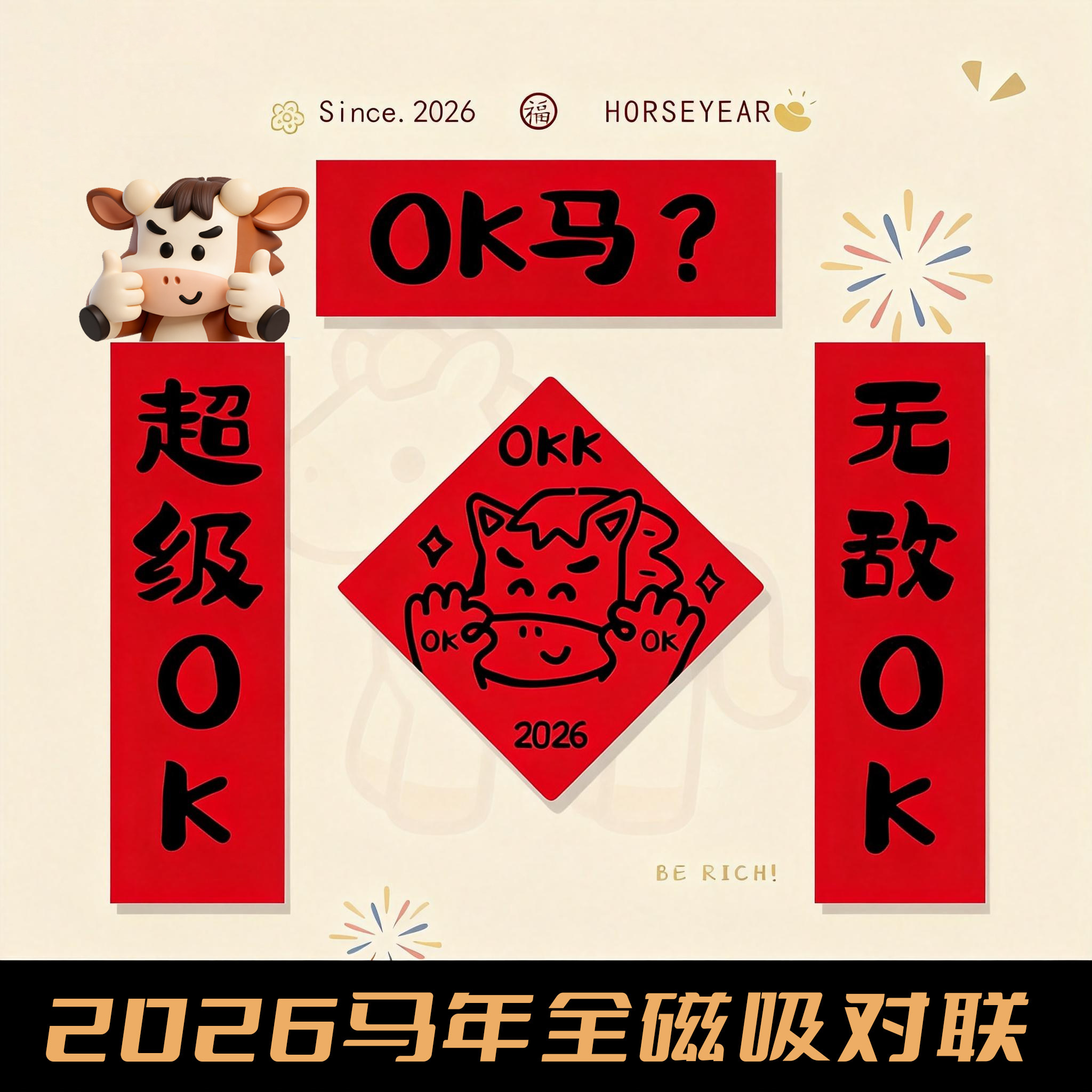 春联对联2026年新款马年磁吸迷你对联门贴小尺寸年轻人创意搞笑贴