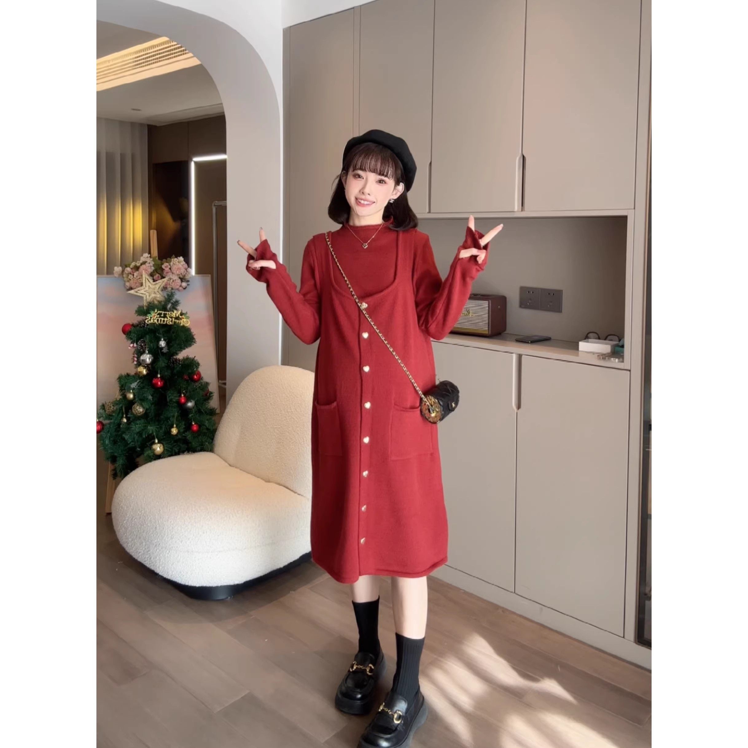 猫单【秋冬套装】特价清仓时髦洋气针织长裙加厚孕妇装连衣裙套装